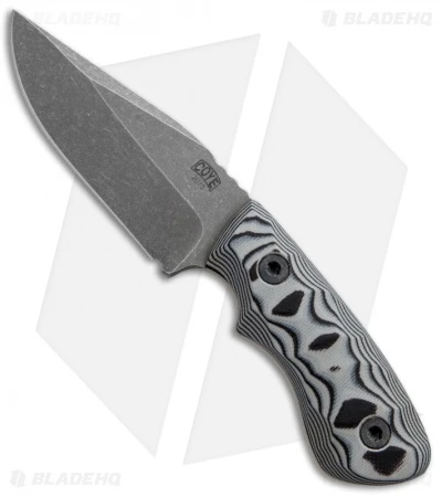 The Ridgeback Custom knife is a small belt knife perfect for everyday chores. It is made from N690 stainless steel and features an acid wash finish. The handle is made from sculpted black/white layered G-10. Each Kydex sheath is custom made as the texturing on each handle is unique to every knife.