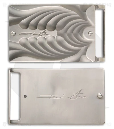 Custom titanium belt buckle with rib cage pattern. Lightweight and very unique.