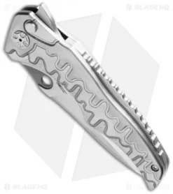This Brian Tighe Custom Tighe Nee is a compact automatic knife with a built-in carabiner clip for carry convenience. It sports a mirror polished RWL-34 steel spear point blade that measures just under 2-inches. The handle is made from lightweight titanium with a grooved pattern for added grip. Comes in a padded zipper pouch.