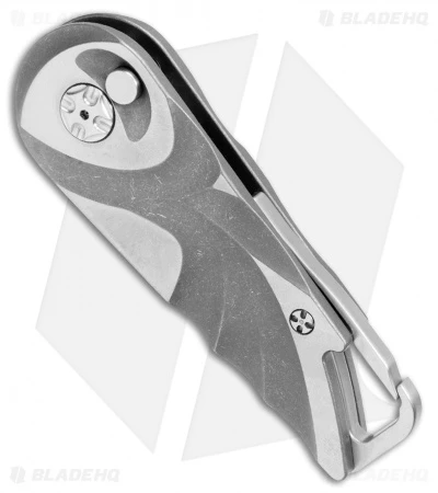 This Brian Tighe Custom Tighe Nee is a compact automatic knife with a built-in carabiner clip for carry convenience. It sports a mirror polished RWL-34 steel spear point blade that measures just under 2-inches. The handle is made from lightweight titanium with a grooved pattern for added grip and a two-tone satin/bead blast finish. Comes in a padded zipper pouch.