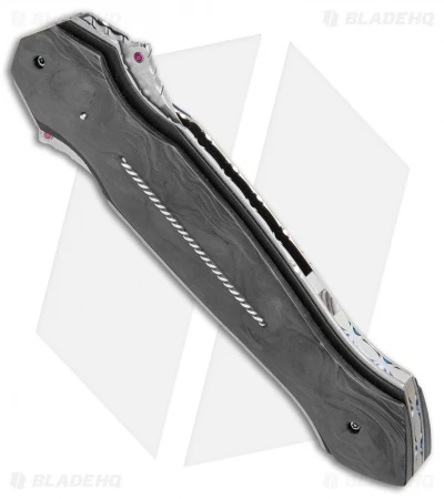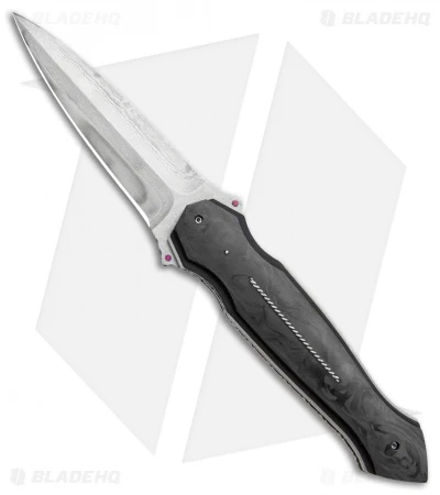 This custom Folding Dagger from Corrie Schoeman is a beautiful tactical knife that is a work of art as well. It features a perfectly symetrical design when open and closed, and a smooth flipper action. The handle consists of titanium liners, G-10 and marble carbon fiber, and a beautiful twisted silver wire inlay.