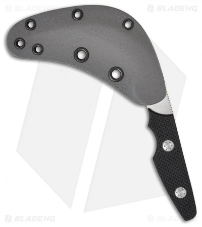 This Dirk Pinkerton knife has a Sickle shaped blade. It is made from D2 tool steel and it features textured G-10 handle scales. The knife includes a low profile kydex sheath with holes for lashing and/or neck carry use.