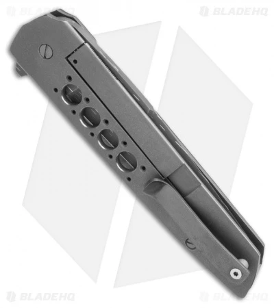 This knife is an exceptional example of Jason Clark’s fine knife making skills and style. The blade is hollow ground Chad Nichols Star Fire Damascus steel with a swedge. It glides on an IKBS ball bearing pivot and deploys with aplomb. The handle is titanium with a marbled carbon fiber scale and polished zirconium bolster. Frame lock is cleanly drilled and sports a zirconium pocket clip.