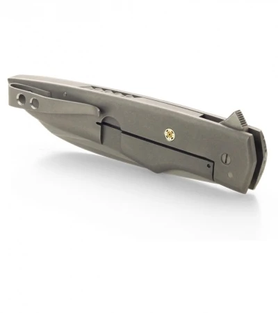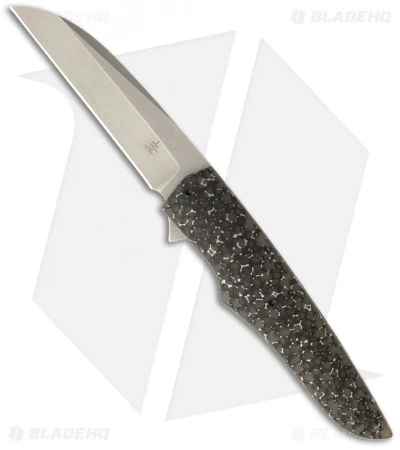 The Wharncliffe Hybrid Flipper is an exquisite hand-made knife from Jason Clark. It features a smooth, contoured C-Tek Matrix front scale. If you’re not familiar with C-Tek Matrix, it has aluminum mesh that is filled with an epoxy resin. It’s a super cool material that is perfectly finished. The handle has a titanium framelock, liner and pocket clip. The backspacer is stainless steel with filework and tumble finished to match the framelock. The Wharncliffe style blade is stonewashed N690 steel and glides open with ease thanks to the IKBS bearing system. This Jason Clark folder is an excellent choice for everyday carry and comes with a tip-up carry pocket clip.