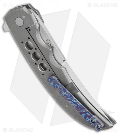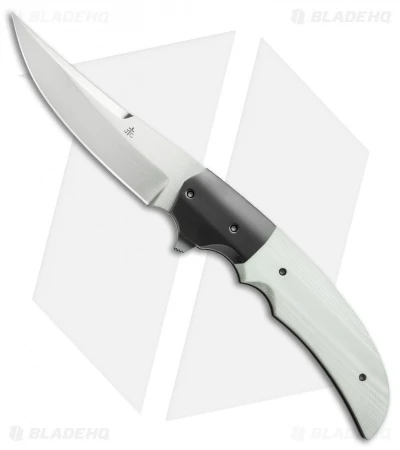 This hand-made flipper from Jason Clark is a sleek, precise folder with great looks and smooth action. The titanium frame lock handle features a Zirconium bolster, a white G-10 scale and a stainless steel back spacer. Its Persian style blade is hand rubbed CTS-XHP stainless steel with a satin finish, hollow main grinds, and slight swedge ground spine. The blade opens with ease thanks to the IKBS bearing system. This Jason Clark folder is an excellent choice for everyday carry and comes with a tip-up Timascus pocket clip.