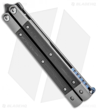 This model of the Penasong sports a titanium handle with carbon fiber inlays and a mokuti latch. The blade is made from damascus.