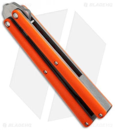 Sam Eddleman Bowie Balisong Knife Orange G-10 (4.25″ Acid Wash/Satin)