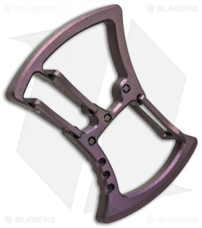 Thierry Savidan’s Guillotine functions as a convenient keychain, carabiner, bottle opener, and impact tool all-in-one. The Guillotine is equipped with three sturdy clasps for the secure carry of keys and other valuables. This model is full titanium with a purple anodized finish.