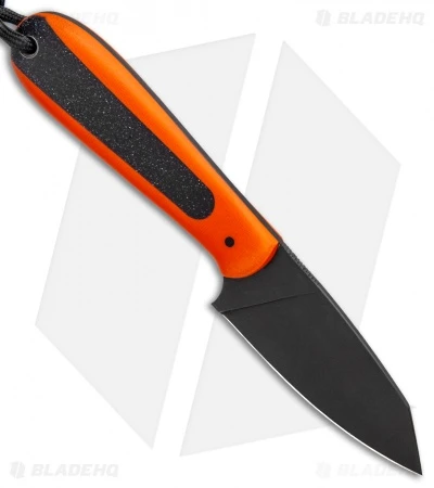 The T.M. Hunt Custom Hogua fixed blade sports a tough and durable lightweight build for managing any outdoor cutting chore. This Hogua model is outfitted with a wharncliffe style blade in a black coated finish. It has an orange G-10 handle with an “Onyx Flake” inlay. The handle is contoured for ergonomic use, with jimping on the thumb rest for added blade control. Item includes a custom leather belt sheath.