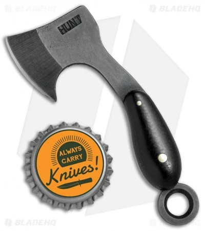 The T.M. Hunt Lil Billy Bad Axe is a mini axe d esigned for pocket or keychain carry. It features a full-tang O1 steel build with a black finish and a built-in lanyard/key ring hole. Each piece is made with the same incredible attention to detail, and offers a razor sharp edge for smaller daily cutting tasks. Their small size makes them perfect for keychain, necklace, or pocket/purse carry. Includes a secure Kydex sheath.