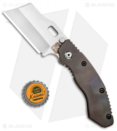 The Trouble Blades Lil Debt Collector is a heavy-duty folding cleaver knife. This small folder features a smooth titanium frame lock handle with a matte finish. Its 0.20″ thick 3V steel blade comes in a satin finish and has a long section of jimping along the spine. Trouble Blades’ Debt Collector is a rugged, dependable knife that won’t disappoint.