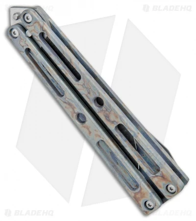 This VMX Butterfly knife sports a Vulcan titanium handle and a Chad Nichols “Blackout” Damascus blade.